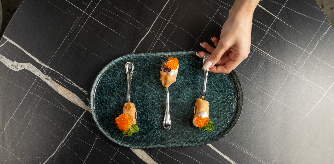 Add a small sprig of dill and a few microgreens to each spoon for a refined touch.