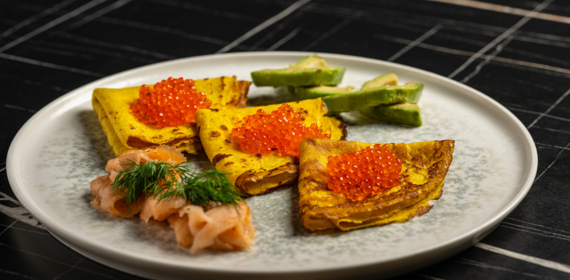 Savory Crepes with Delica Caviar, Smoked Salmon, and Avocado